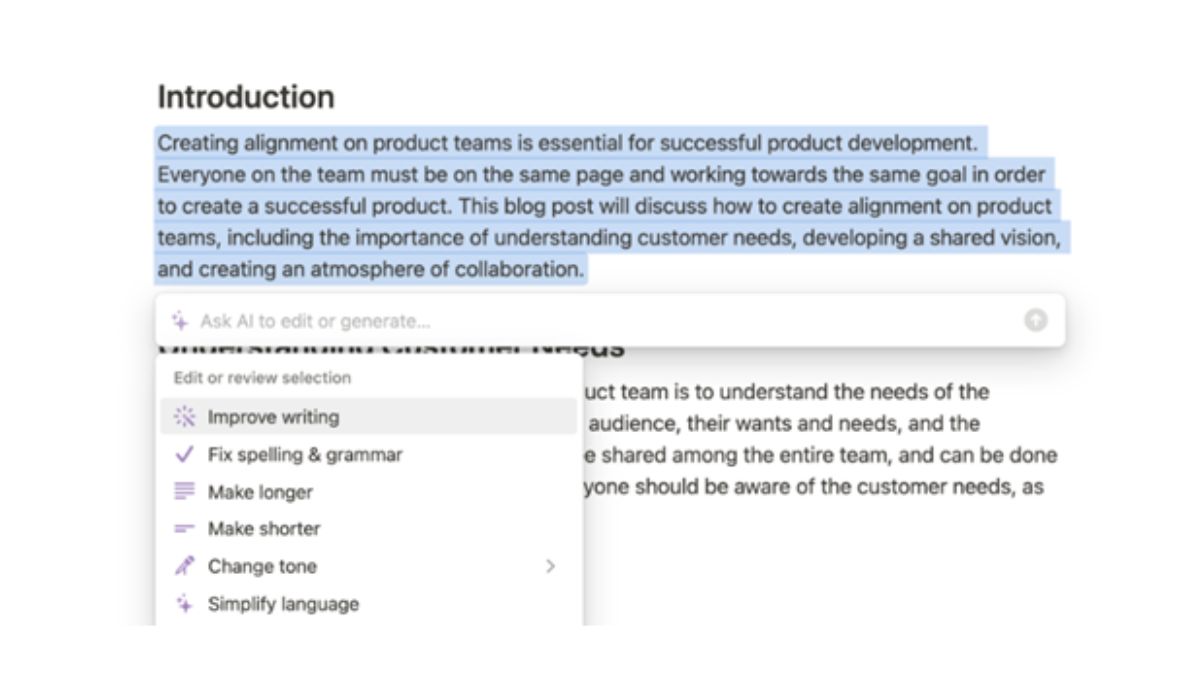 Example: Create project docs and let AI summarize or rewrite them instantly.